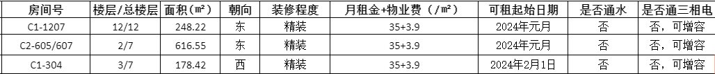 房租价格(2023年度):35元/平方/月;税收(所得税、增值税)达标,可享受高新区房租补贴政策。物业费3.5元/平方/月。