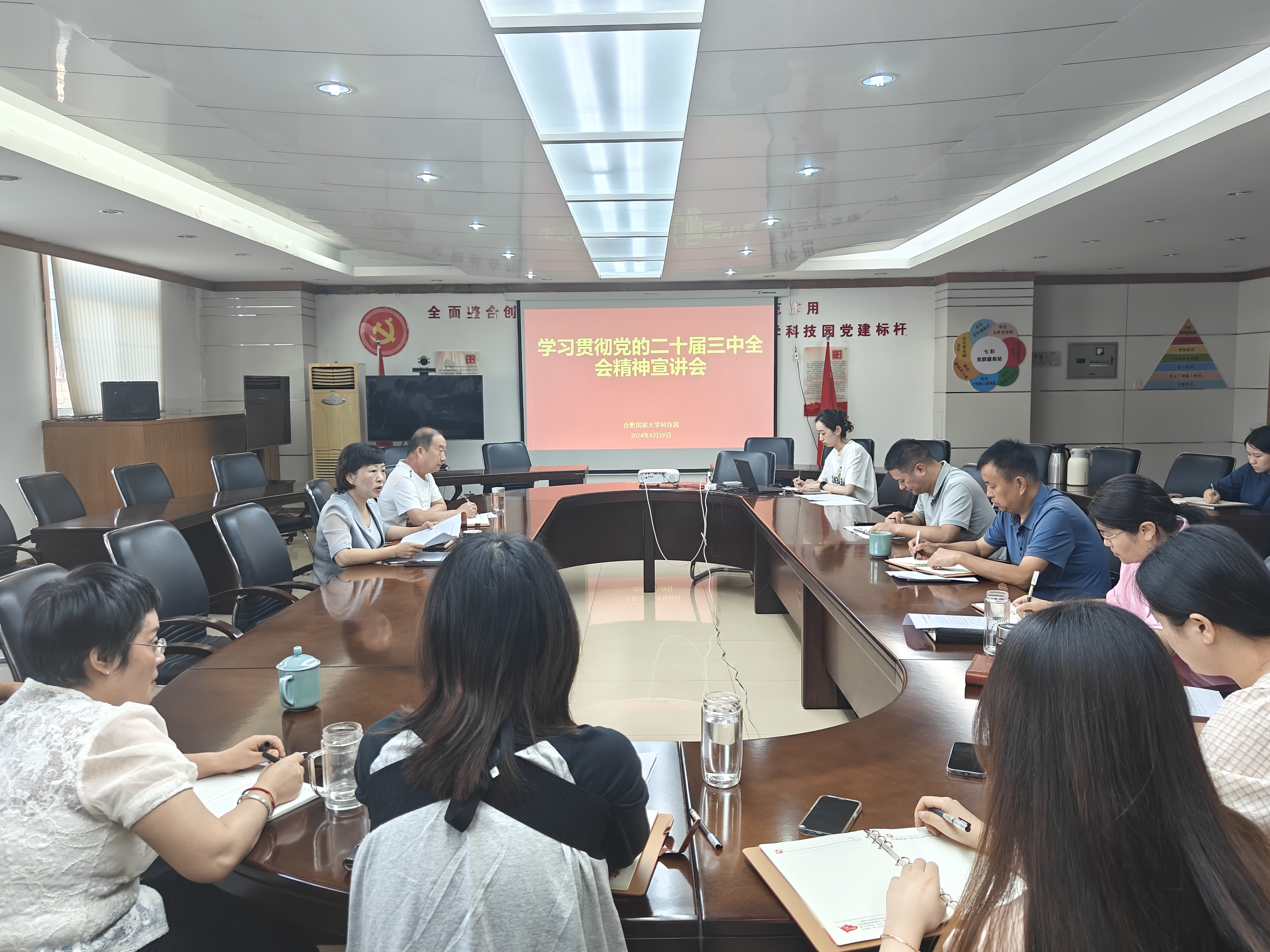 9月29日下午,安徽国控集团党委宣讲团成员,大学科技园党支部书记、董事长斯映红在大学科技园开展党的二十届三中全会精神宣讲报告。