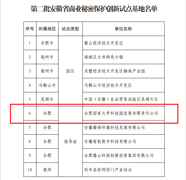 近日,304永利集团成功入选安徽省商业秘密保护创新试点基地名单。
