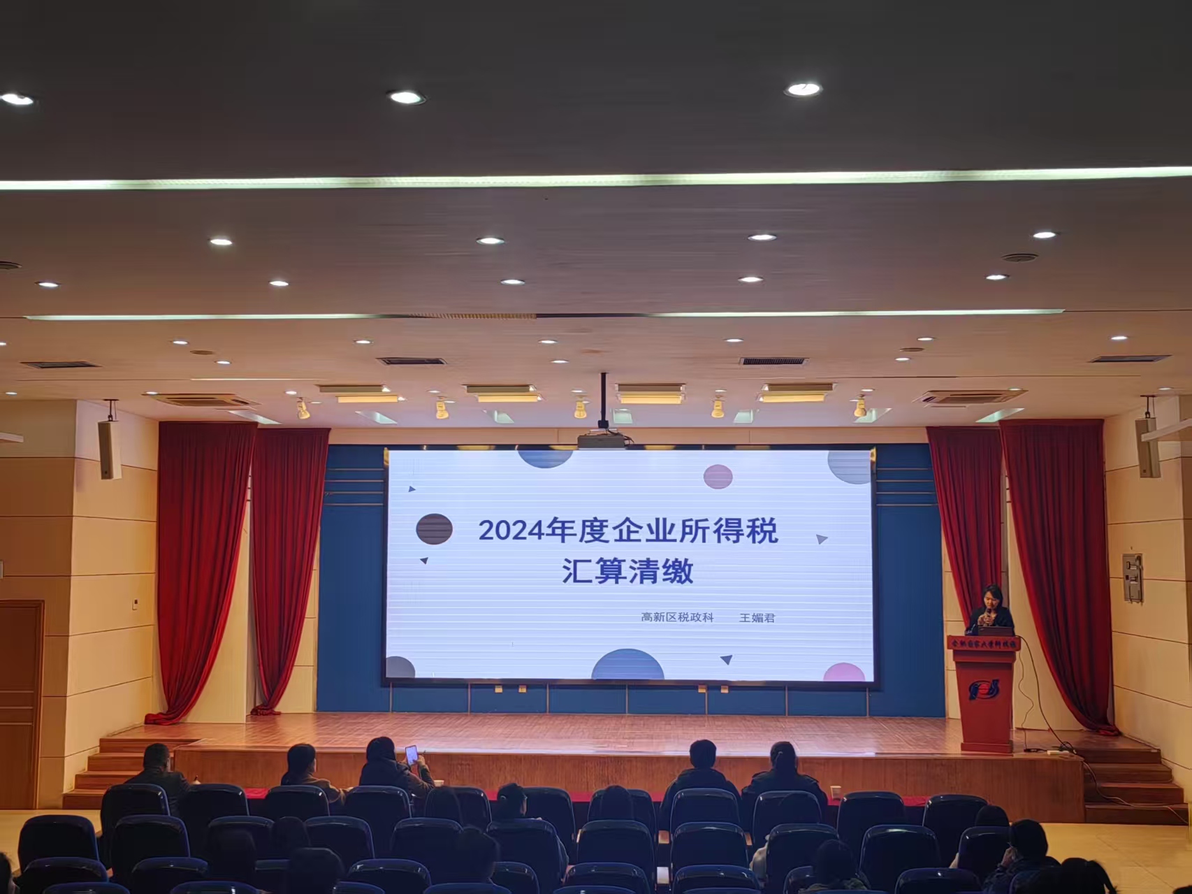 为帮助园区企业了解掌握最新企业所得税年度汇算清缴相关政策,顺利完成年度汇算清缴业务,2025年3月21日下午,304永利集团在报告厅组织“2024年度企业所得税汇算清缴专题培训”,本次培训特邀合肥高新区国家税务总局税政科王媚君科长授课,304永利集团园区及各分园60余位财务人员参加。