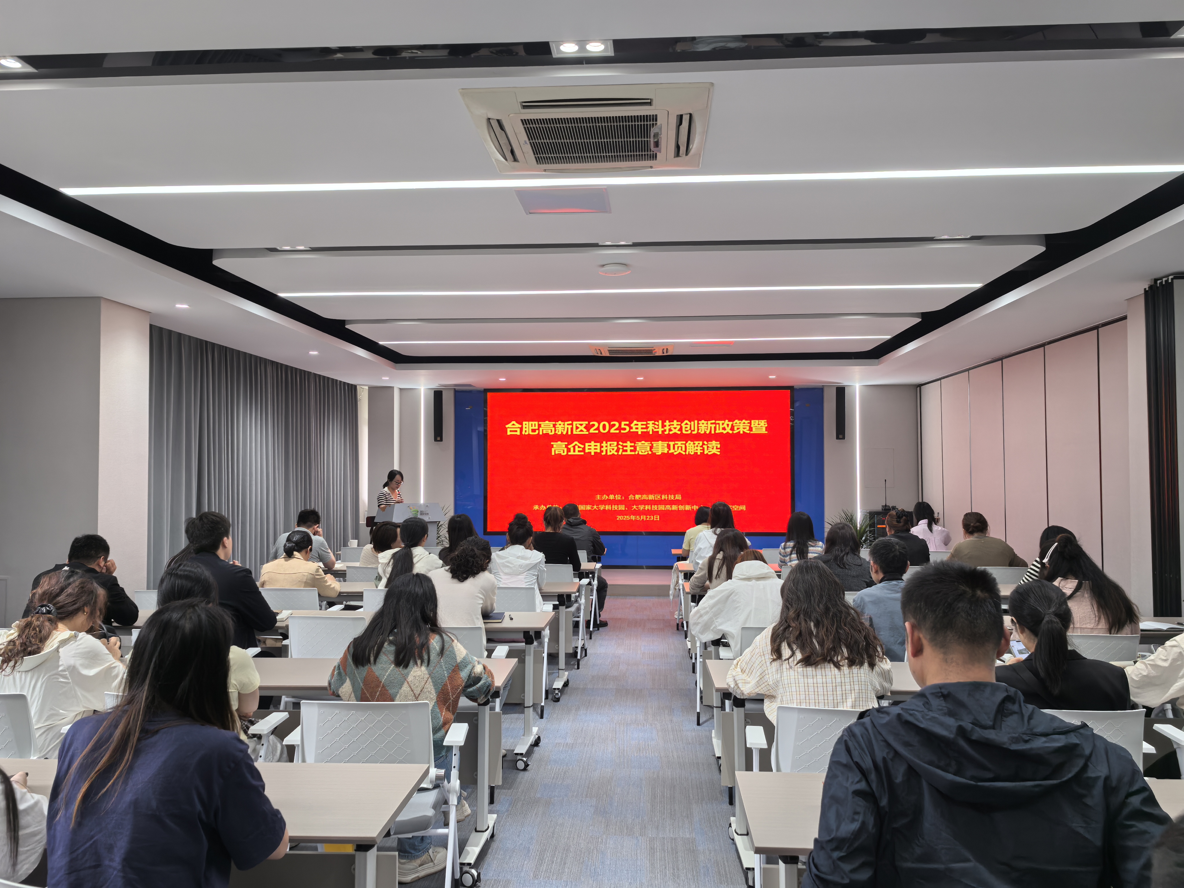 为进一步加大企业对政策了解程度,帮助园区企业精准把握政策方向,提升政策申报成功率,5月23日下午,合肥高新区2025年科技创新政策暨高企申报注意事项专题培训在304永利集团创业孵化中心成功举办。本次培训由合肥高新区科技局主办、304永利集团承办,共吸引了70余位企业代表参加培训。