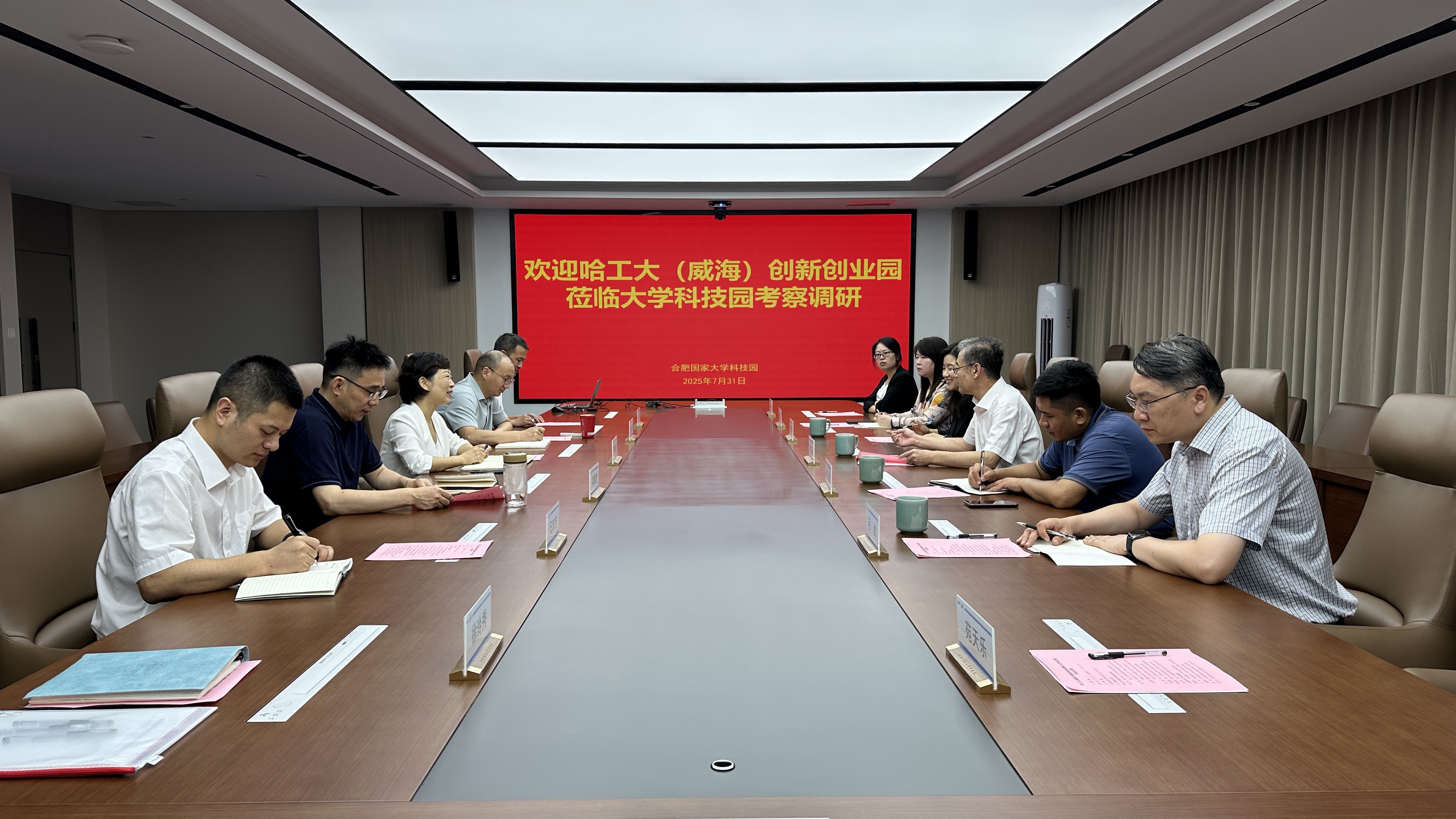 7月31日下午,哈尔滨工业大学(威海)副校长、哈工大威海创新创业园董事长兼总经理张文丛一行来园考察调研。董事长斯映红、副总经理毛庆和吴燎原热情接待了来访客人。