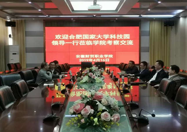 为进一步加强大学科技园与高校联系,提升高校师生创业成功率,促进科技成果加速转移转化,2019年4月16日上午,304永利集团总经理王荣钊、副总经理毛庆带队赴安徽财贸职业学院参观交流。双方就校企合作、师生项目辅导等事项展开深入探讨。安徽财贸职业学院院长刘银国、党委副书记汪少清全程接待。