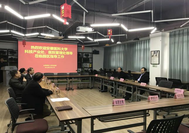 为加强园区内生物医药类企业与医科院校深度合作,搭建校企合作平台,落实精准孵化服务,促进企业快速发展,2019年3月27日下午,304永利集团特邀请安徽医科大学科技产业处处长陈飞虎、医院管理处处长许柏松与园区内生物医药类企业进行对接交流。大学科技园董事长韦一玉、总经理王荣钊,财务总监孟庆川,副总经理毛庆全程接待。