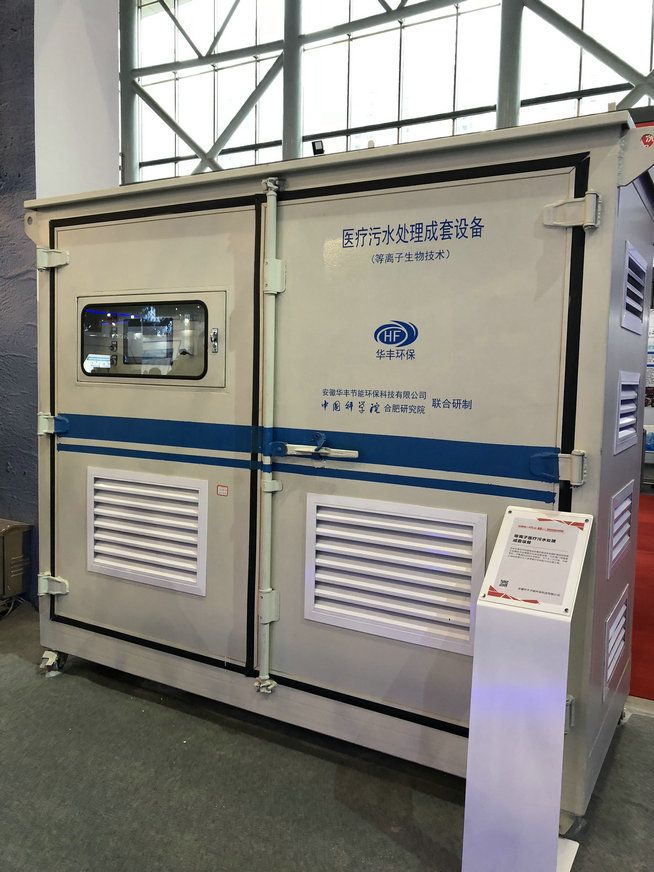 安徽华丰环保科技公司展出的等离子体医疗污水处理一体机已申报17项国家专利,并在国际上著名期刊发表论文,具有技术行业领先、不需添加任何化学药剂、不产生二次污染、设备投资和运营成本低的特点,是医疗污水处理和运营行业的技术创新和跨越,目前已成功应用于30多家医院的医疗污水处理工程。
