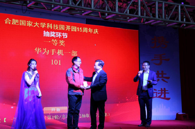 本次年会的文艺表演内容丰富,节目来源于园区各家企业。开场表演是大学园选送的大合唱《走进新时代》,大学园的所有管理岗员工集体亮相,以蓬勃向上的精神共同演绎了这一首高亢激昂的歌曲;合肥微晶材料科技有限公司的王燕青演唱了歌曲《卓玛》,优美的旋律和浑厚的女中音让在座的来宾久久沉醉;合肥知恩生物技术有限公司带来了活力四射的舞蹈串烧《舞动青春》;3U创客空间及其在孵创业团队合肥薄荷教育科技有限公司联合带来的吉他弹唱《成都》,清新的节奏和童声让大家耳目一新......各家企业的节目精彩纷呈,中间还穿插了抽奖环节,随着幸运奖、三等奖、二等奖、一等奖的抽取,不断掀起了年会的高潮。