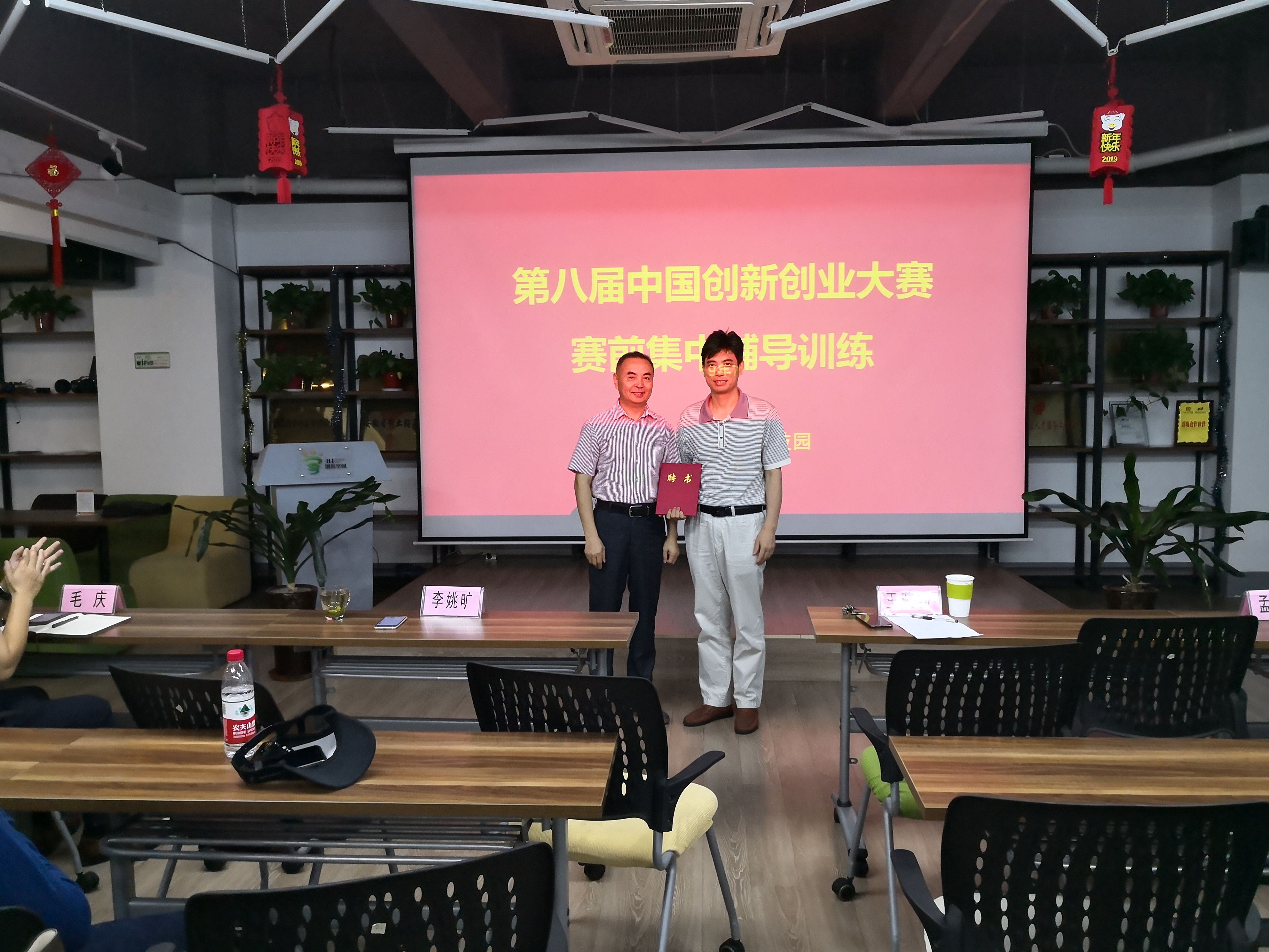 培训前,韦董事长,王总经理分别给李学英会长和李姚矿教授颁发304永利集团创业导师聘书。