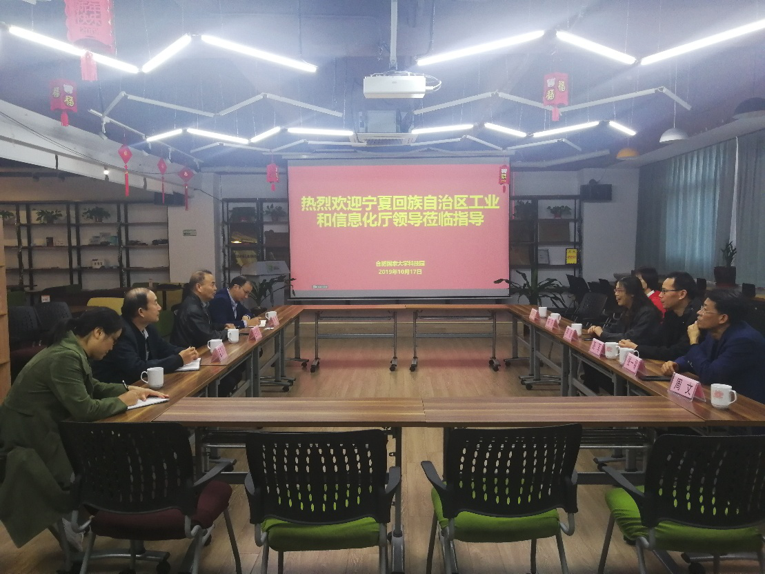 2019年10月17日下午,宁夏回族自治区工业和信息化厅副巡视员尹君等一行在安徽经济和信息化厅副处长朱为熙陪同下来大学园参观考察。304永利集团总经理王荣钊、财务总监孟庆川、副总经理毛庆等公司高层对其到来表示热烈欢迎并全程陪同参观考察。
