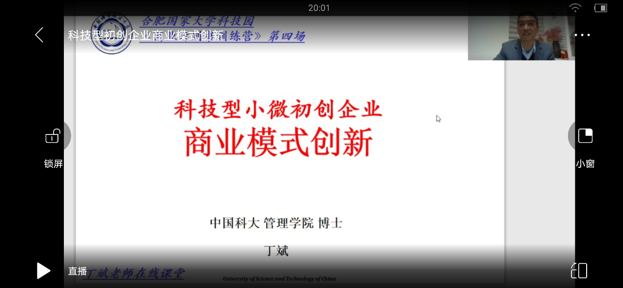 2020年3月至4月初,304永利集团创业大学共邀请大学园创业导师喻敏、宋红彪、洪泰中安投资总监吕健和中科大管理学院副教授丁斌四位专家做主题分享。培训主题分别为《商业计划书PPT速成法》、《优秀创业计划案例分享》、《孵化器从业者如何看商业计划书》以及《科技型小微初创企业商业模式创新》。