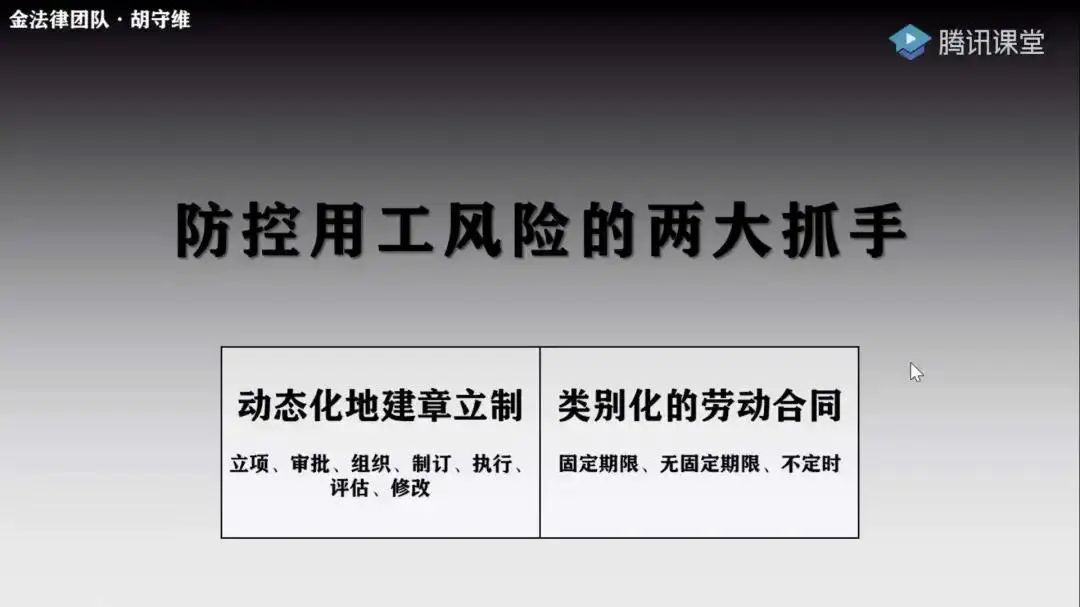 最后胡律师强调,企业应该动态化建章立制,类别化制定劳动合同,提高防范意识,以免发生劳动纠纷。