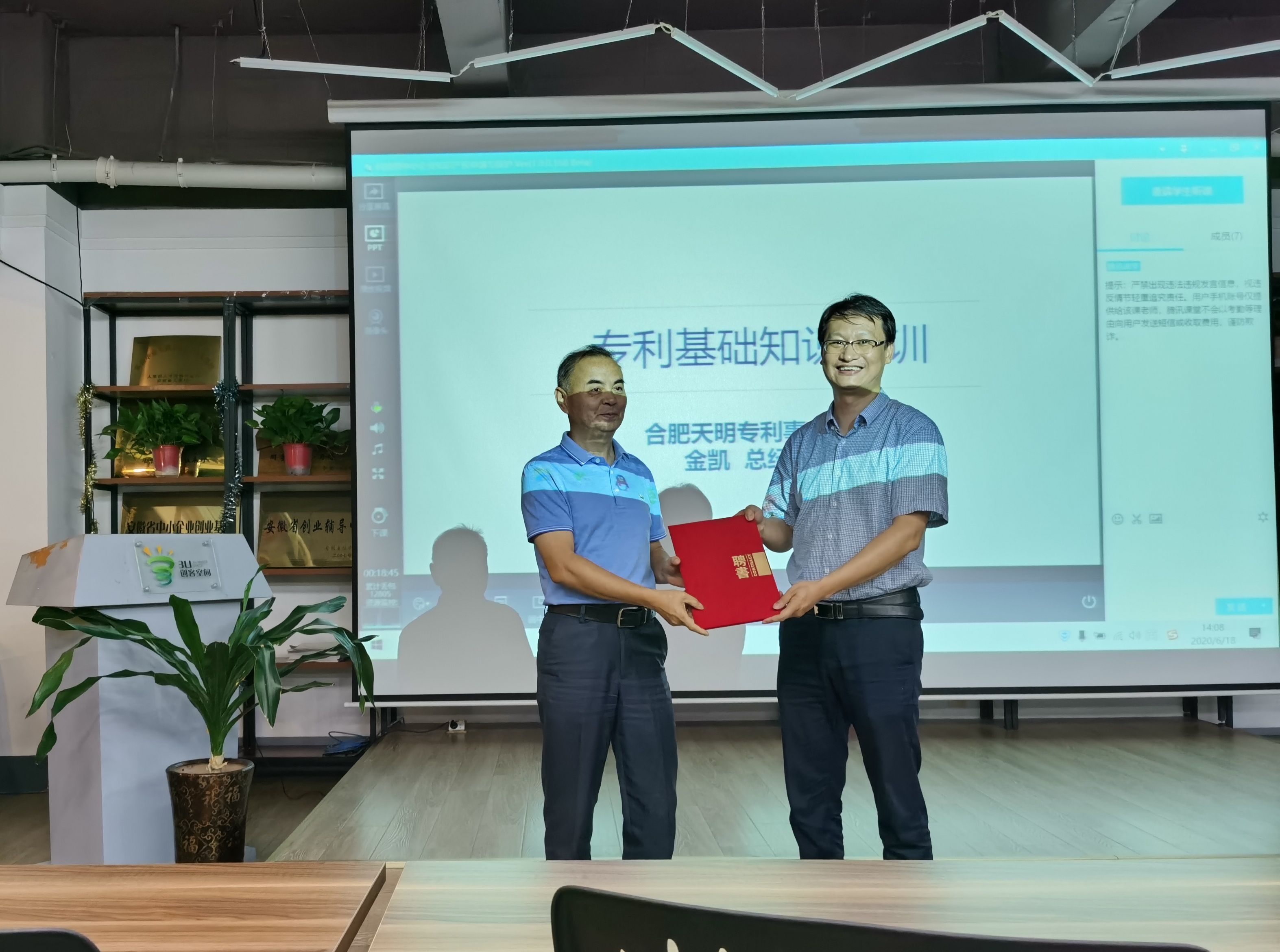 2020年6月18日,304永利集团创业大学系列课程“科技型中小企业知识产权申请与保护”讲座活动在3U创客空间举办,本次活动特邀304永利集团创业导师,合肥天明专利事务所总经理,专利高级工程师金凯作为主讲人。