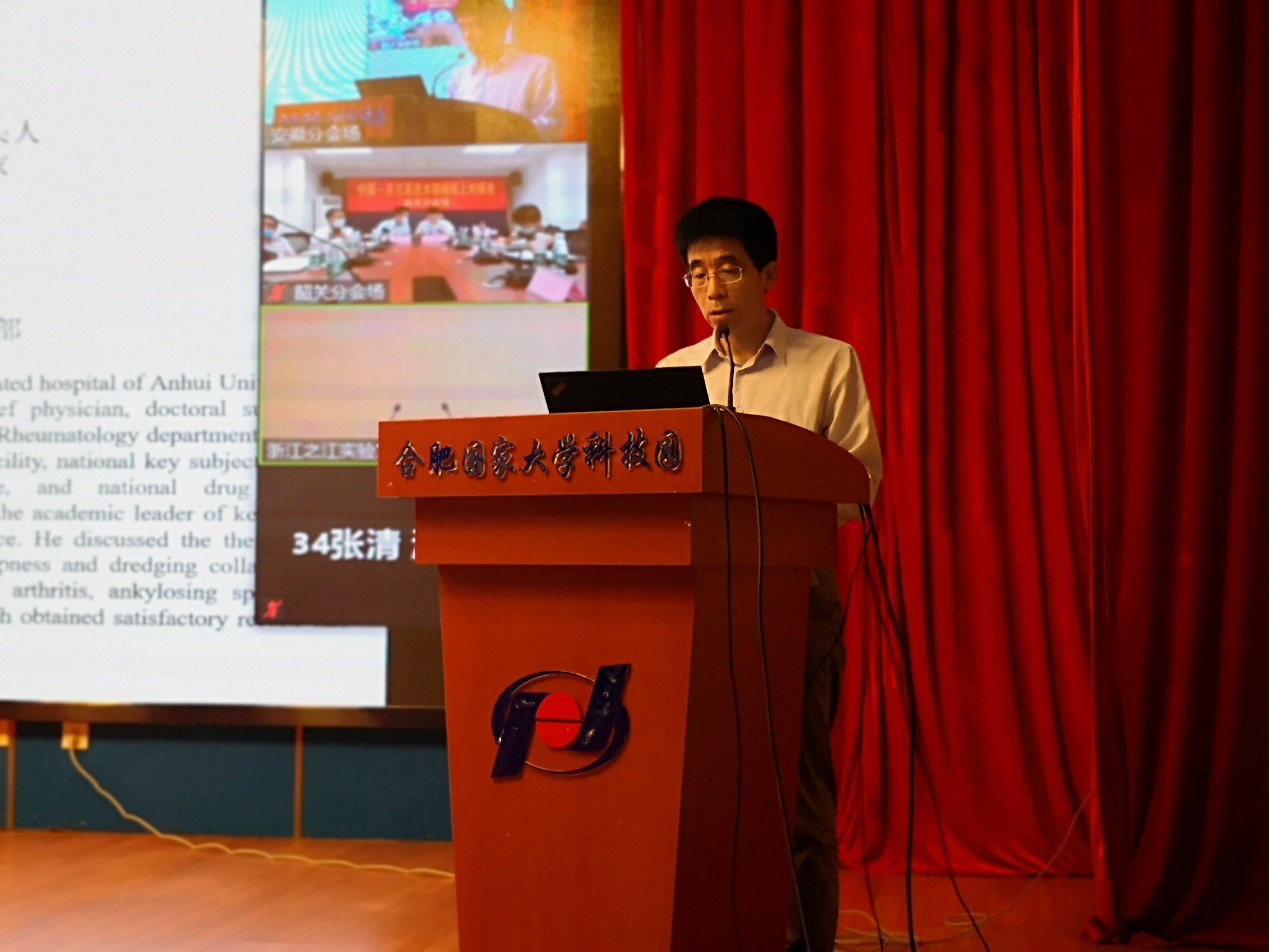 (安徽中医药大学第一附属医院党委副书记刘健汇报《中医药改善类风湿关节炎患者感受的医学大数据挖掘及分子生物学机制研究》项目)