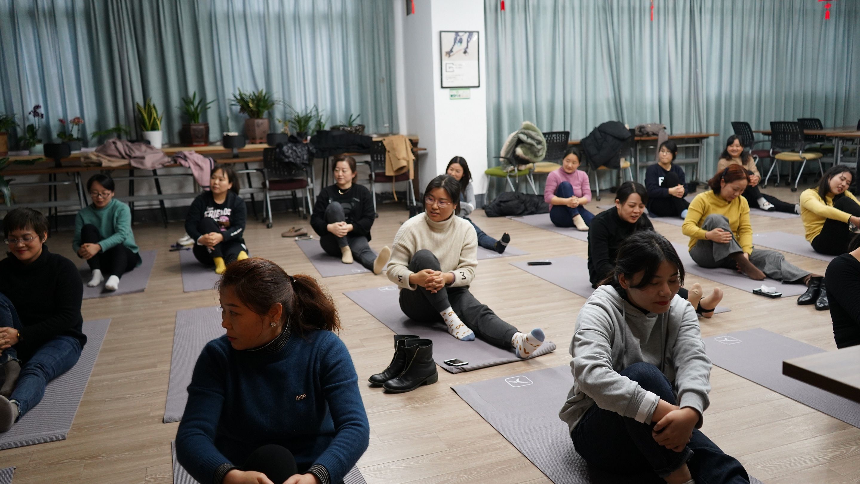 虽然部分女职工是首次接触瑜伽,练习起来有一定的难度,但是大家都十分投入,跟着老师的讲解和音乐节奏,逐渐放松身体,体验瑜伽带来的平静和淡定。