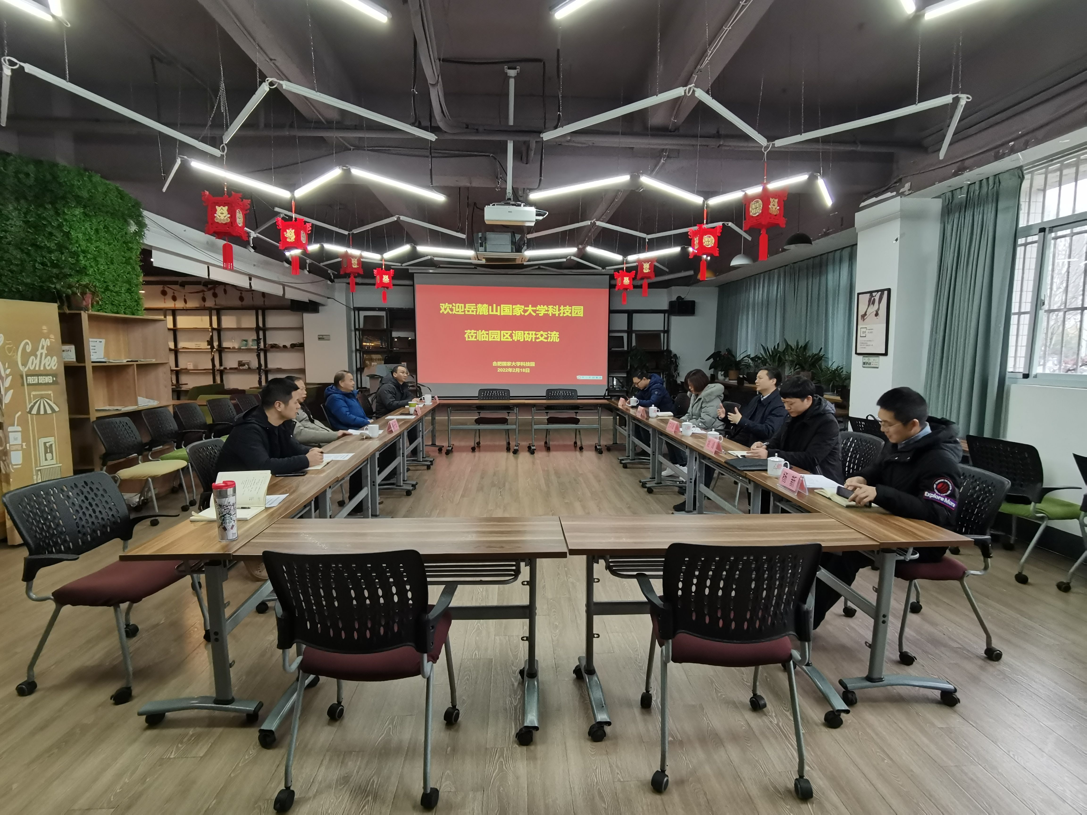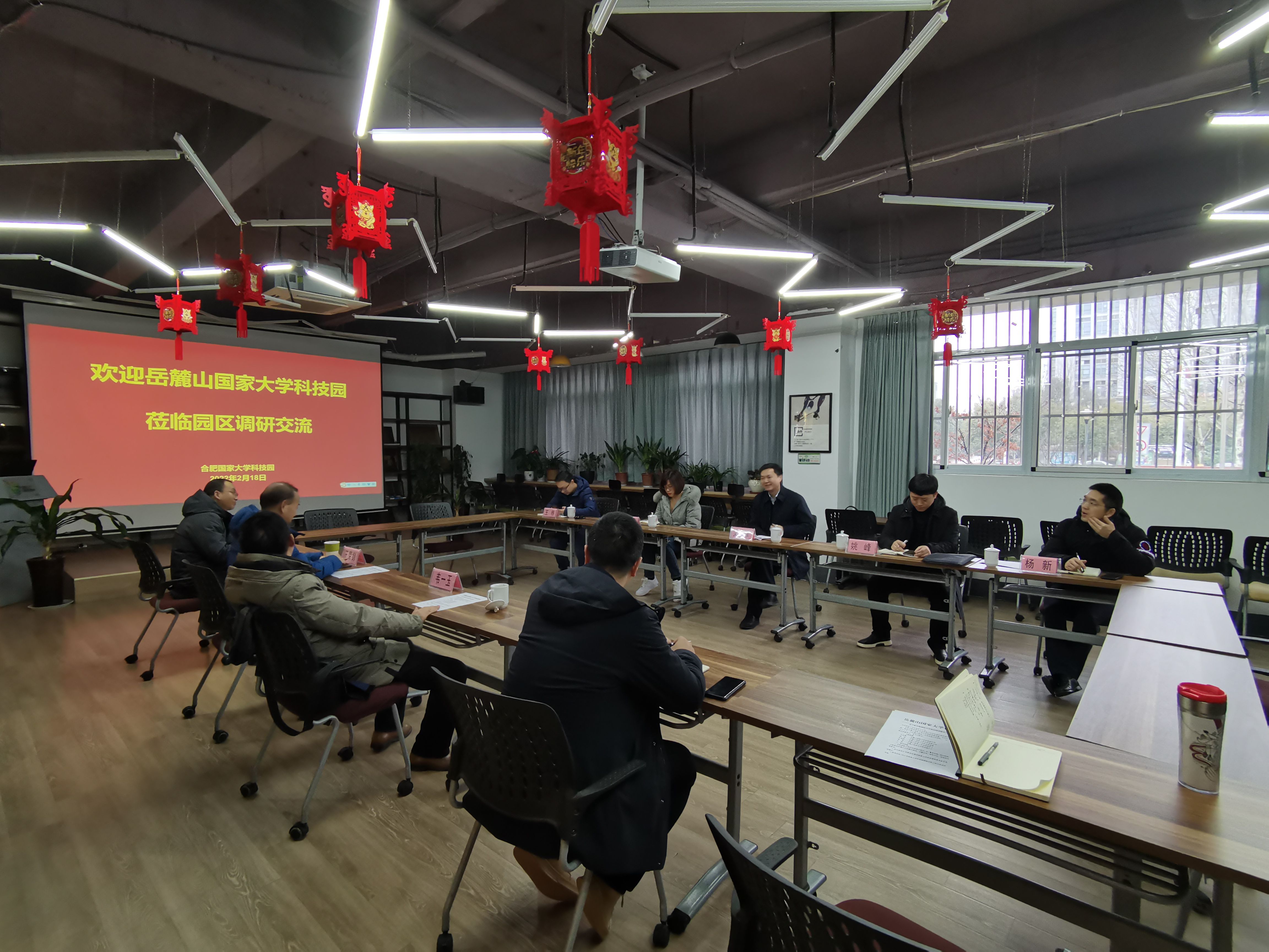 2月18日上午,岳麓山国家大学科技园主任文华锋、副主任姚峰、部长姜益娟一行来大学园调研交流,大学园董事长韦一玉、总经理王荣钊、副总经理毛庆热情接待了来宾。