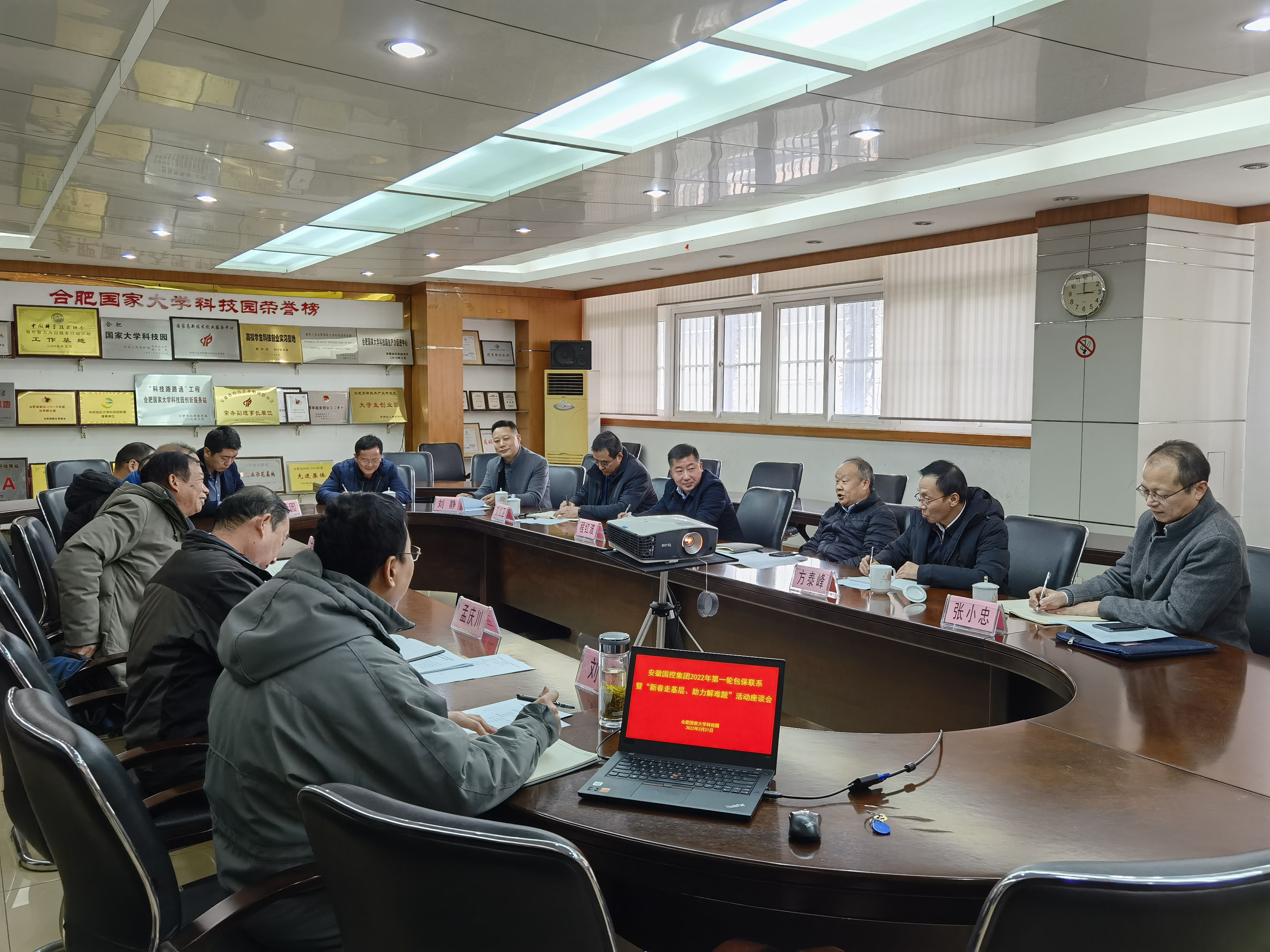 江涛书记在总结时充分肯定了大学园2021年及年初以来各项工作取得的成绩。他指出,大学园要抓住股权划转后的发展机遇,牢牢把握大学园的功能定位,坚持孵化主业,扎实做好科技企业孵化工作;要贯彻落实安徽省第十一次党代会精神,忠诚敬职、奋勇争先,向国内一流大学科技园看齐;要坚持改革创新,加强自身建设,谋划大学园可持续发展路径;要加强人才队伍建设,与集团进行人才培养互动。江涛书记表示国控集团将尽最大能力帮助大学园解决困难问题,确保一季度“开门红” 推动大学园高质量可持续发展。