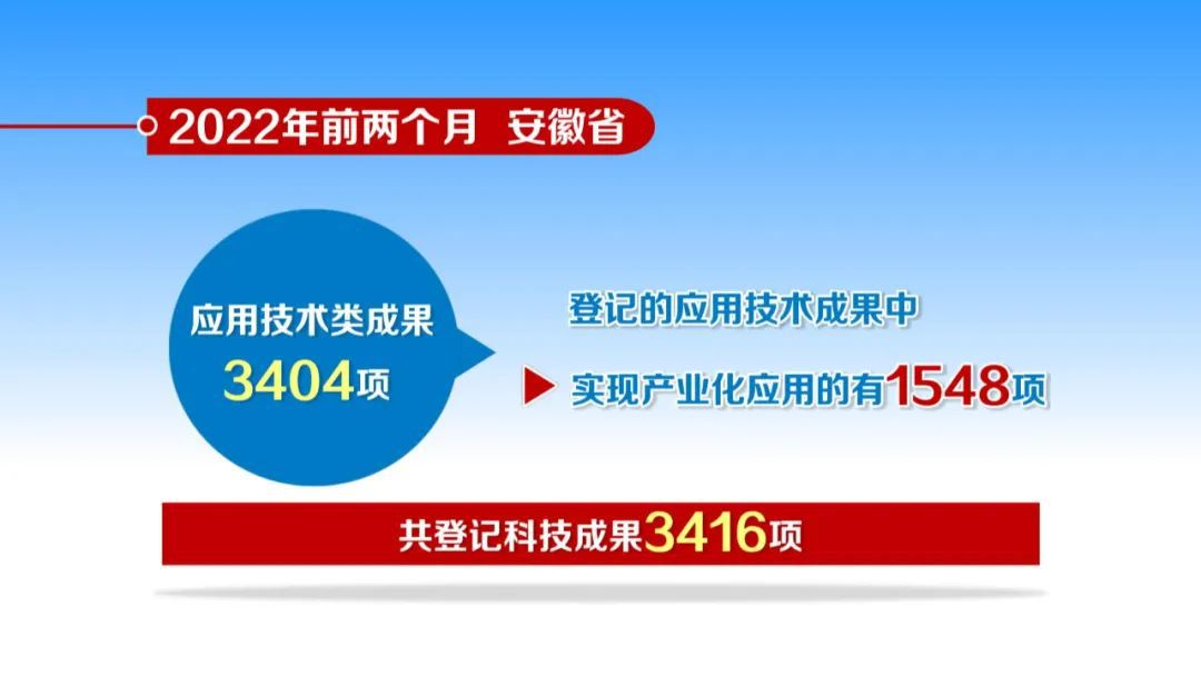 过去一年,围绕促进科技成果转移转化,安徽构筑科技成果熟化孵化平台,新认定省级科技企业孵化器和众创空间53家、新型研发机构38家;推动建立科技型中小企业、高新技术企业梯度培育体系,备案入库科技型中小企业超过11000家,育强成果转化主体;通过不断加大高质量科技成果供给,强化重大创新平台建设,深化科技金融融合发展,今年前两个月,全省共登记科技成果3416项,其中应用技术类成果3404项,登记的应用技术成果中,实现产业化应用的有1548项。一季度,全省吸纳、输出技术合同成交额分别达到204.07亿元、118.59亿元,安徽成为了科技成果的净流入省。