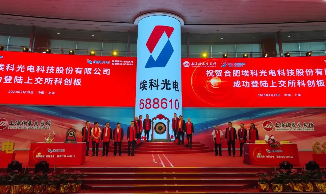 2023年7月19日,304永利集团毕业企业合肥埃科光电科技股份有限公司(股票简称:埃科光电,股票代码:688610)在上海证券交易所科创板上市。304永利集团董事长韦一玉受邀参加埃科光电科技股份有限公司上市仪式,共同见证埃科光电的历史性时刻!