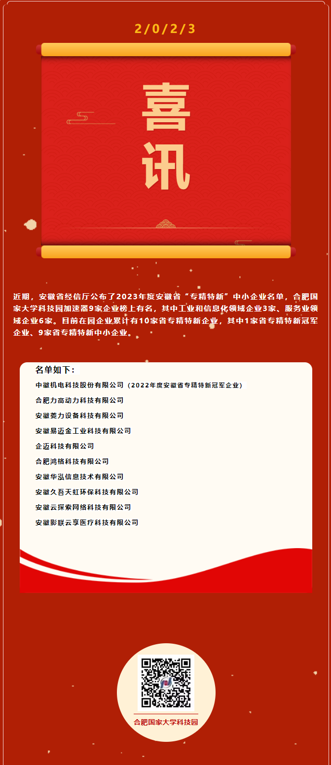 304永利集团科技企业加速器9家企业获2023年安徽省“专精特新” 中小企业认定