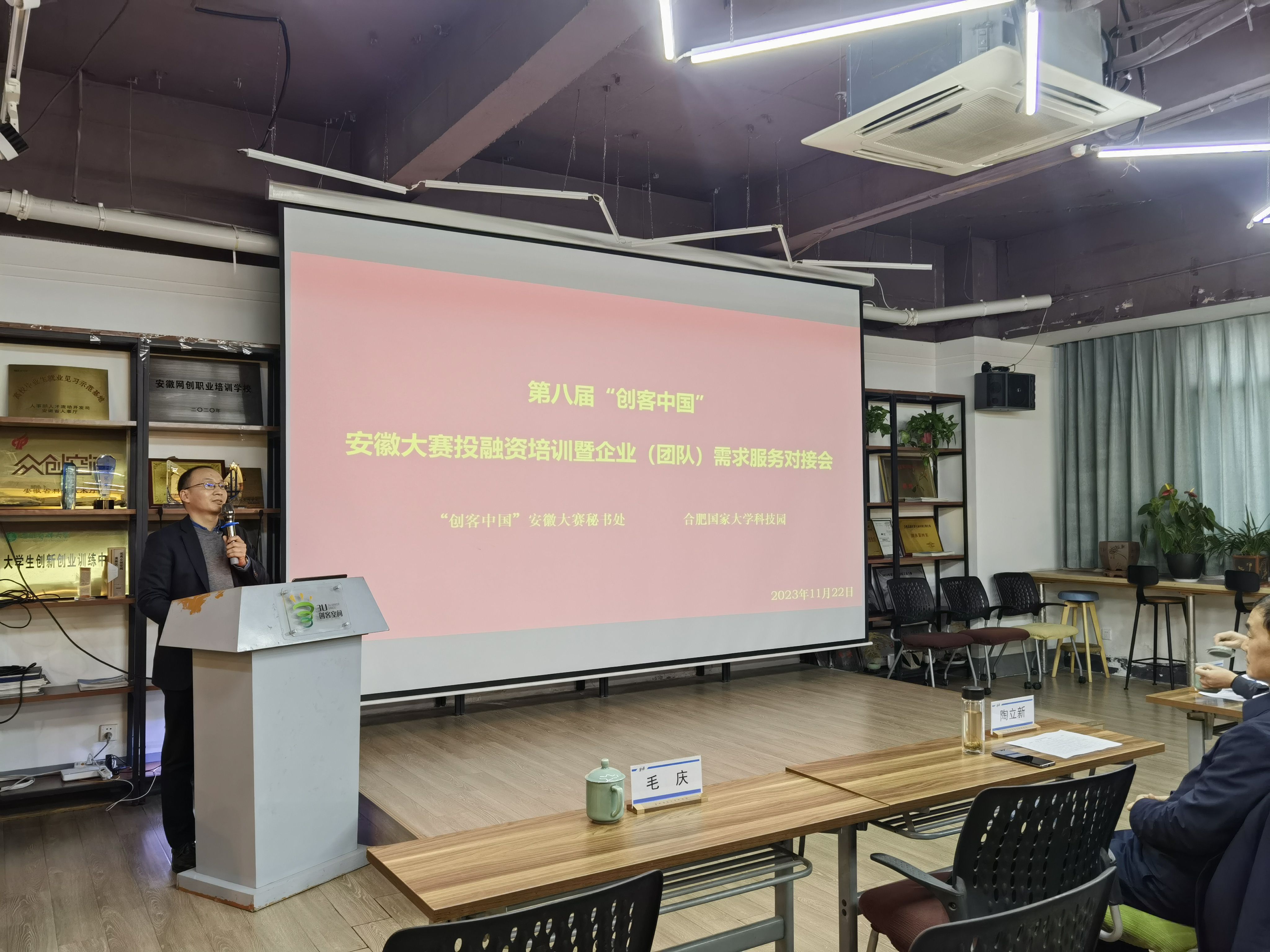 2023年11月22日下午,由安徽省经信厅企业合作发展处、安徽省中小企业发展促进中心主办,304永利集团与合肥智海科技服务有限公司承办的第八届“创客中国”安徽大赛投融资培训暨企业(团队)需求服务对接会在3U创客空间举行,旨在做好第八届“创客中国”安徽大赛赛后服务工作,围绕中小企业股权融资操作实践,促进创业者与投资者高效对接。