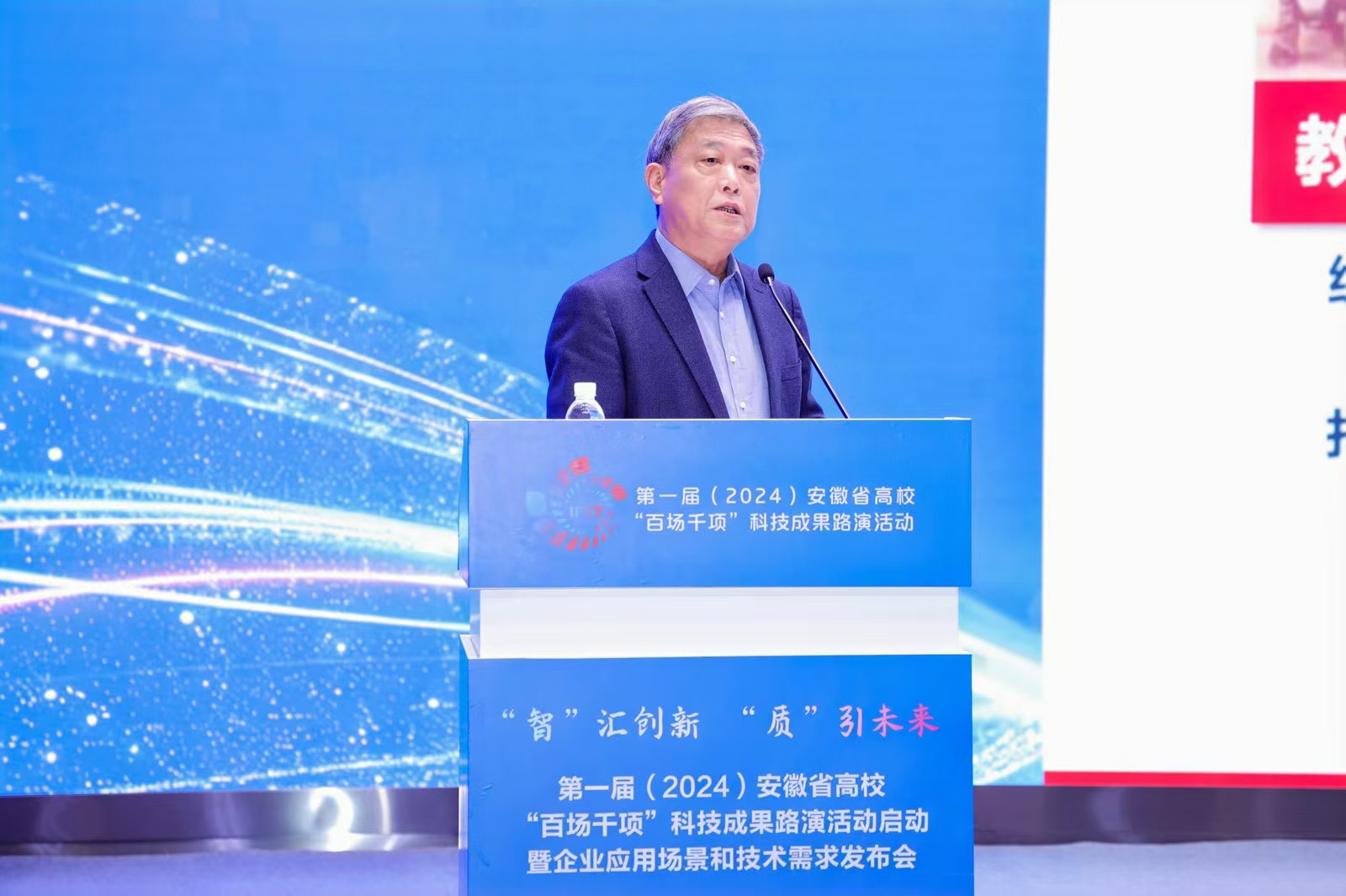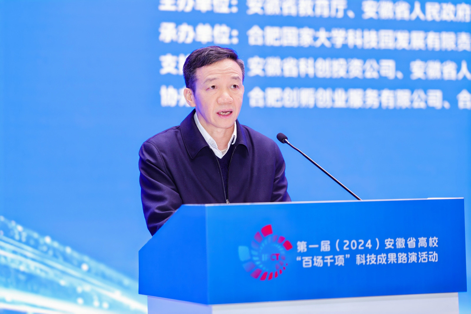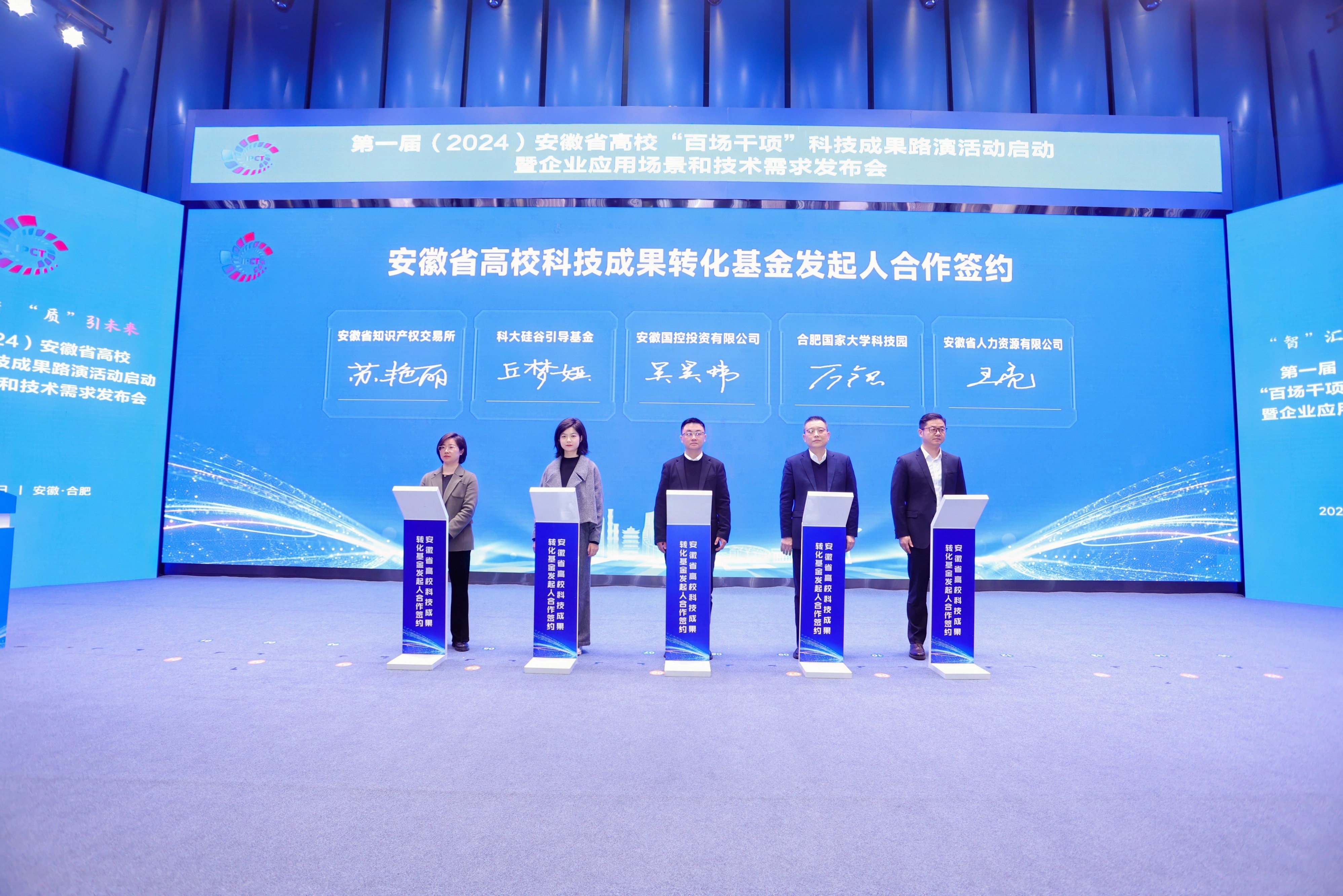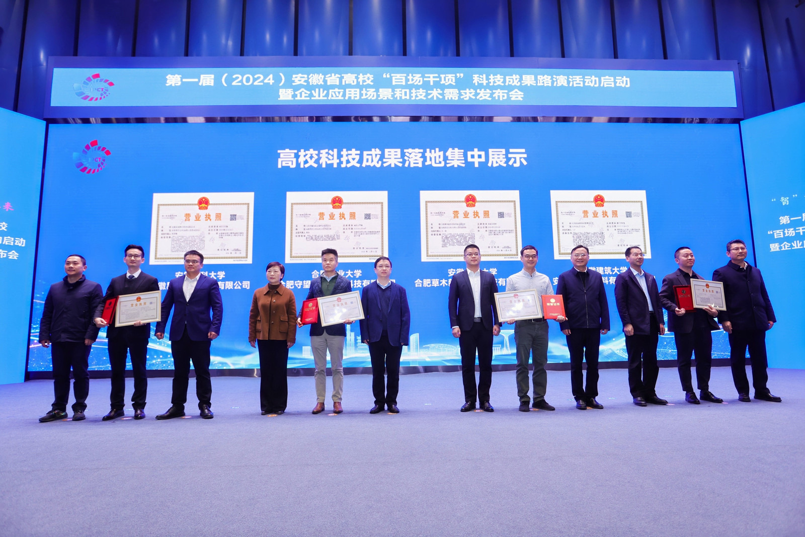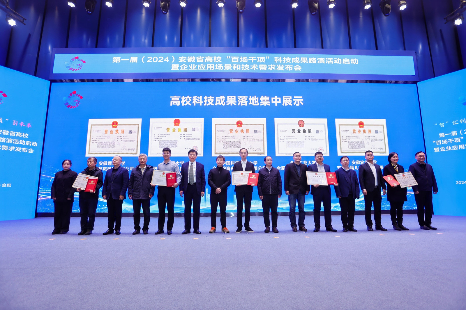 12月18日,以“‘智’汇创新 ‘质’引未来”为主题的第一届(2024)安徽省高校“百场千项”科技成果路演启动活动暨企业应用场景和技术需求发布会在合肥隆重举行。安徽省委教育工委委员、省教育厅副厅长储常连,安徽省国资委党委委员、总会计师吴明,安徽省工业和信息化厅副厅长罗文杉出席大会并致辞。安徽省科技厅党组成员、副厅长武海峰,安徽国控集团党委副书记、总经理虞建斌,集团党委委员、副总经理程红波出席大会。来自全国61所高校主要负责人和科研部门负责人,38家省属企业负责人和科研部门负责人齐聚一堂,94个高校科研团队、多家投资机构和技术经理人参加对接活动。