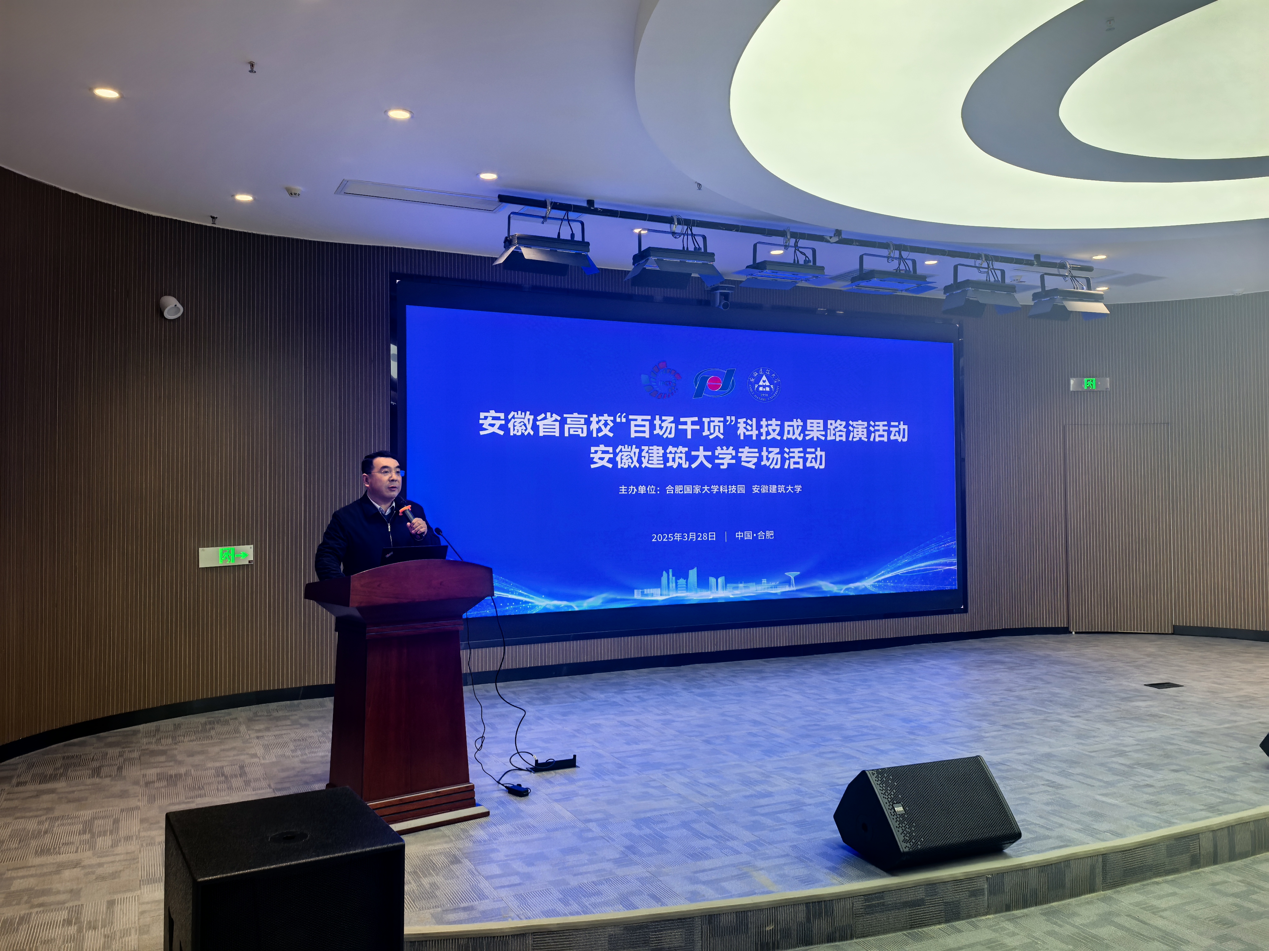 2025年3月28日上午,安徽省高校“百场千项”科技成果路演活动安徽建筑大学专场在该校大数据中心报告厅隆重举行。活动以“深化产学研融合,推动科技成果转化”为主题,集中展示了安徽建筑大学在多个科技领域的创新成果,吸引了高校领导、企业代表、投资机构及创业导师等近百人参与。